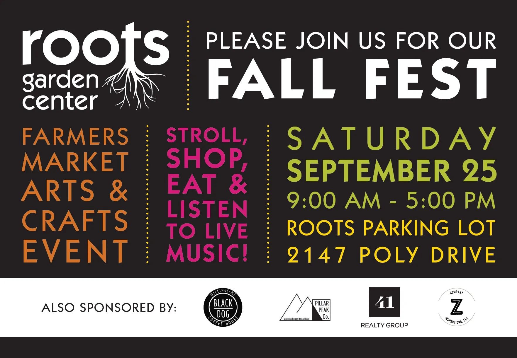 Farmers Market and Arts & Crafts Event in the Roots Parking Lot at 2147 Poly Dr.