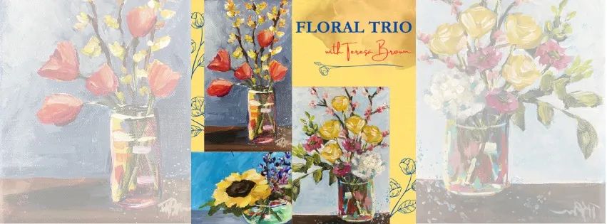 Working in a series is a great way to practice a subject. Create all 3 of these fun floral paintings on 5x7 canvases. All supplies provided.