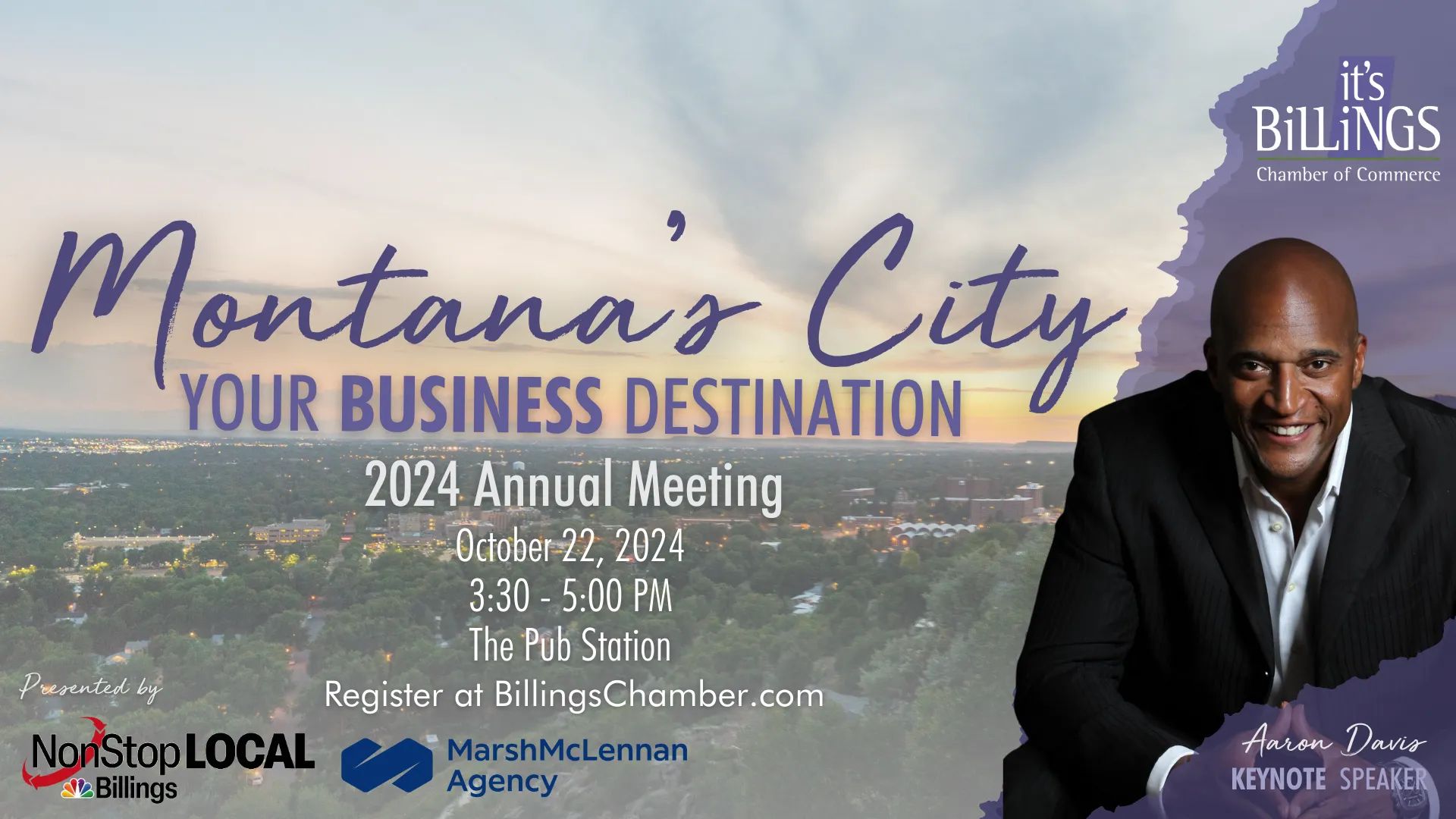Join us on October 22, 2024 from 3:30- 5 pm at the Pub Station for the Billings Chamber of Commerce Annual Meeting, presented by NonStop Local and Marsh McLennan Agency, where we will explore the exciting future of the Billings business landscape. This year’s theme, Montana’s City: Your Business Destination, highlights our commitment to bolstering business in Billings, unlocking the potential of our local economy, and harnessing the power of community.