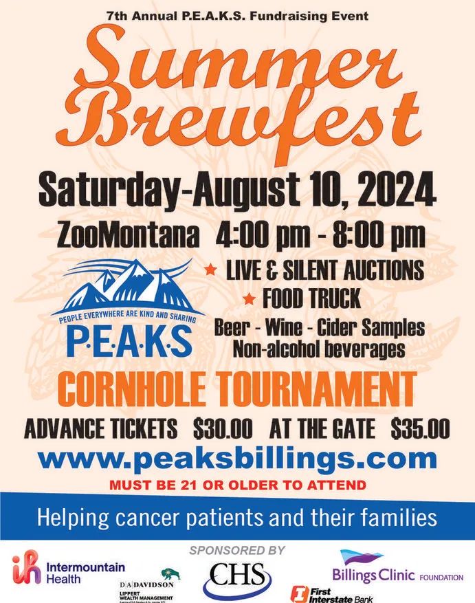 The PEAKS BrewFest helps to raise money for area cancer patients and their families. Live and Silent Auctions, 50/50, wine and gift card pulls, Cornhole and Beer Stein holding contests. Serving local microbrews, ciders and seltzers. Taste So Good food truck will have delicious food. The local band, Lunatic Fringe, will provide music.