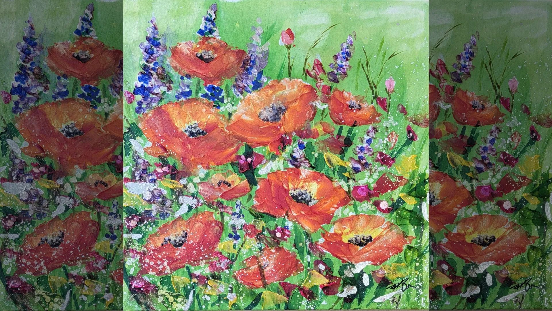 Learn to use Alcohol inks mixed with Cold Wax. In this class we will be learning how to use a card to manipulate the background, mix alcohol inks with cold wax and use a palette knife to create the flowers. 12x12 inch canvas panel.