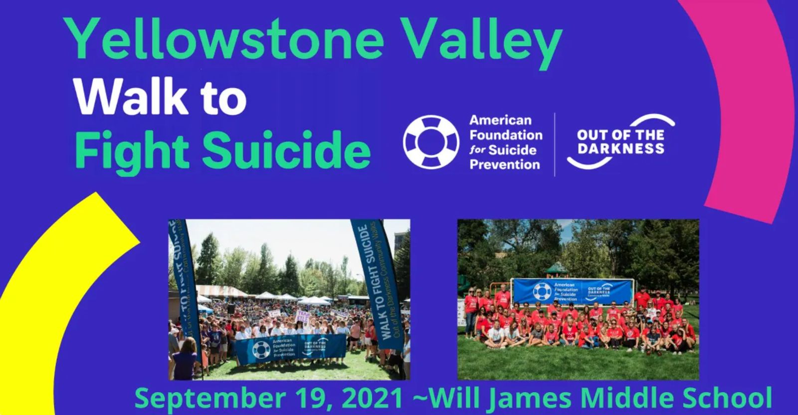 Join us at the Yellowstone Valley Out of the Darkness Walk, a walk to fight suicide. We walk to Save Lives. We walk to Raise Awareness. We walk to Honor loved ones. We walk to Spread the Word. We walk to fundraise for continued suicide prevention resources and research.