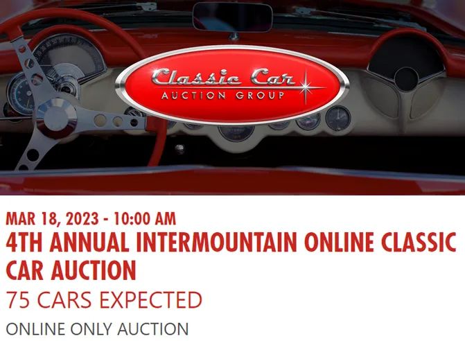 Join us safely and conveniently on your phone, computer or device of your choice for the 4th Annual Intermountain Online Only Classic Car Auction! An excellent line-up of classic and collector cars are presented for sale at auction through our online bidding partner, Proxibid. A limited number of Road Art/Memorabilia items will be sold as well. Bidding opens on lots at 8am MST on Saturday, March 11th. Bidding closes on lots beginning at 10am MST on Saturday, March, 18th. Cars close in 3 minute increments according to run order. For bidding information and to register to bid, click here!