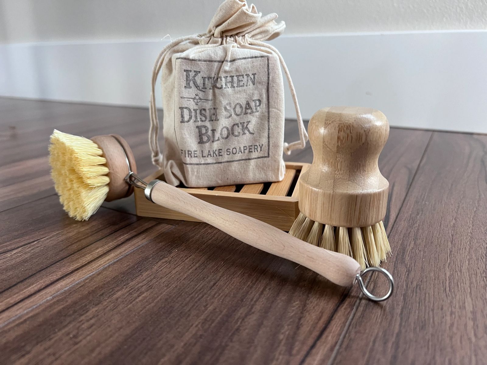 Frae Favorite: Fire Lake Soapery Kitchen Dish Soap Block - $18/bar, Bamboo Scrubber $10