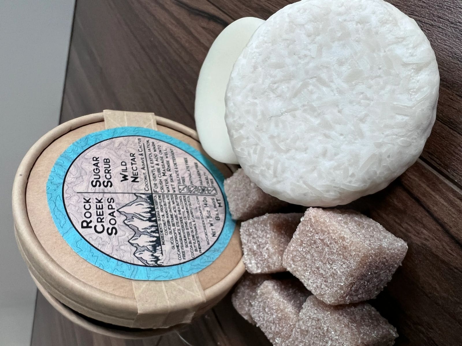 Frae Favorite: Rock Creek Soaps Sugar Scrub Cubes, Shampoo and Conditioner bars in Wild Nectar