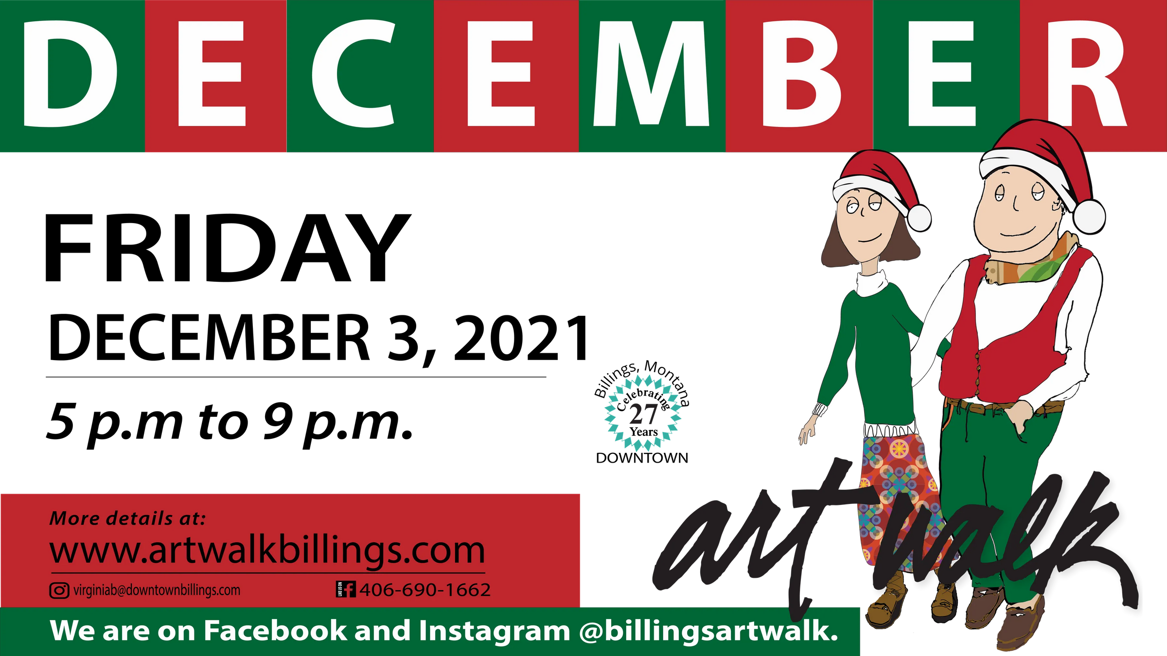 Plans are underway for the final ArtWalk event of 2021 on Friday, December 3, 2021 from 5 - 9 p.m. Follow us on Facebook and Instagram and at artwalkbillings.com for updates on participating locations with images and gallery notes. Save the date and we look forward to seeing you!