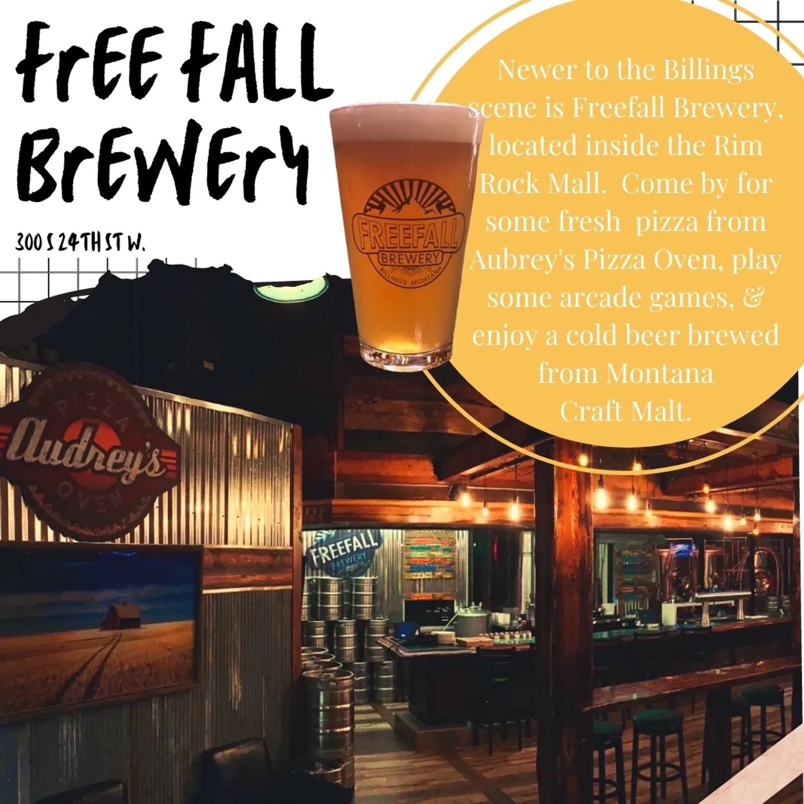 Newer to the Billings scene is Freefall Brewery, located inside the Rim Rock Mall. Come by for some fresh pizza from Aubrey's Pizza Oven, play some arcade games, & enjoy a cold beer brewed from Montana Craft Malt.
