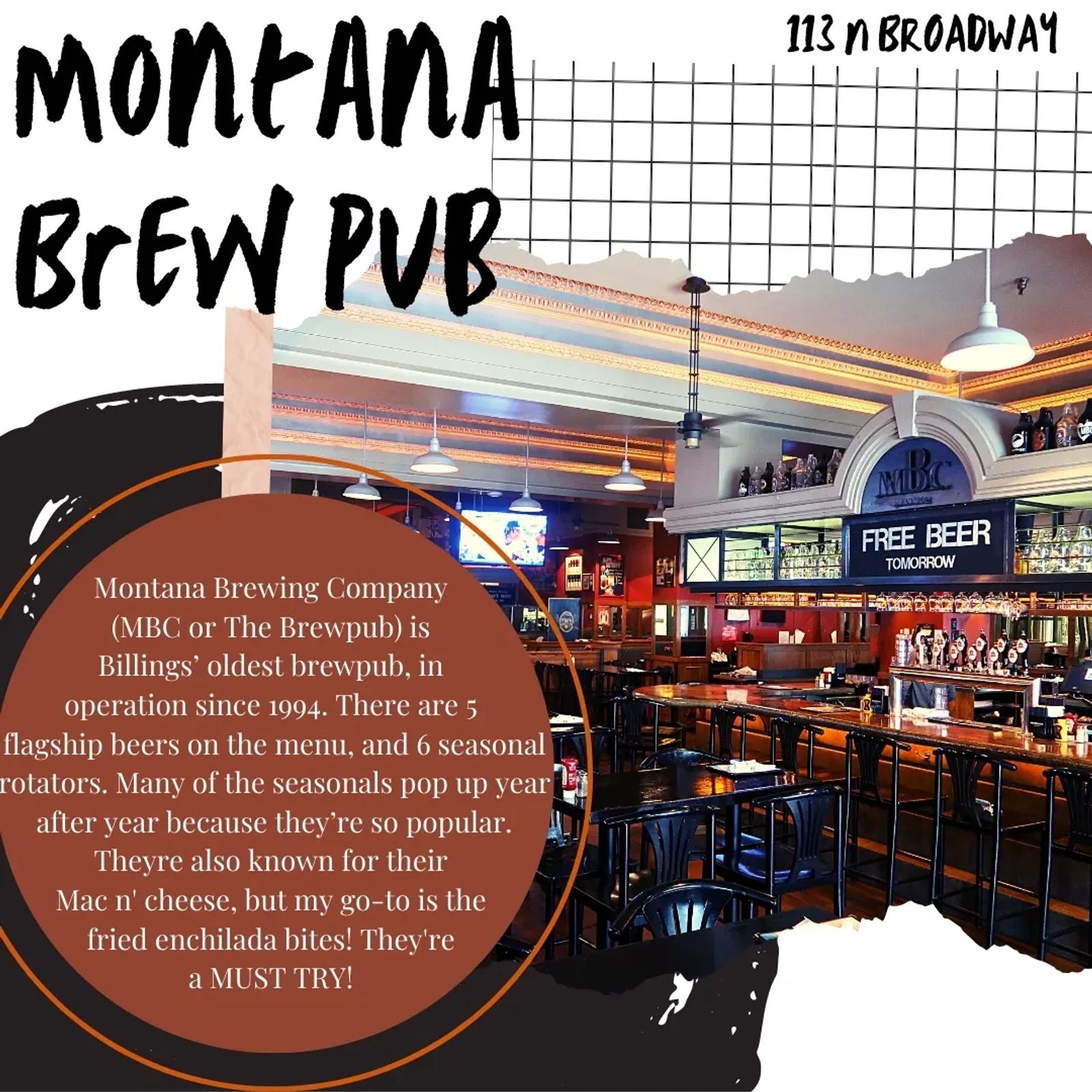 (MBC or The Brewpub) is Billings’ oldest brewpub, in operation since 1994! There are 5 flagship beers on the menu, and 6 seasonal rotators. Many of the seasonals pop up year after year because they’re so popular. They're also known for their Mac n' cheese, but my go-to is the fried enchilada bites! They are a MUST TRY!