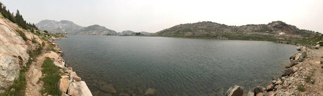 Although the sign at the trailhead says that it’s 7 miles to Rainbow, the lake is a little over a mile long… and there’s no spot to camp at the close end of the lake. In reality, you’re in it for about 8 to 8.5 miles to find decent camping.