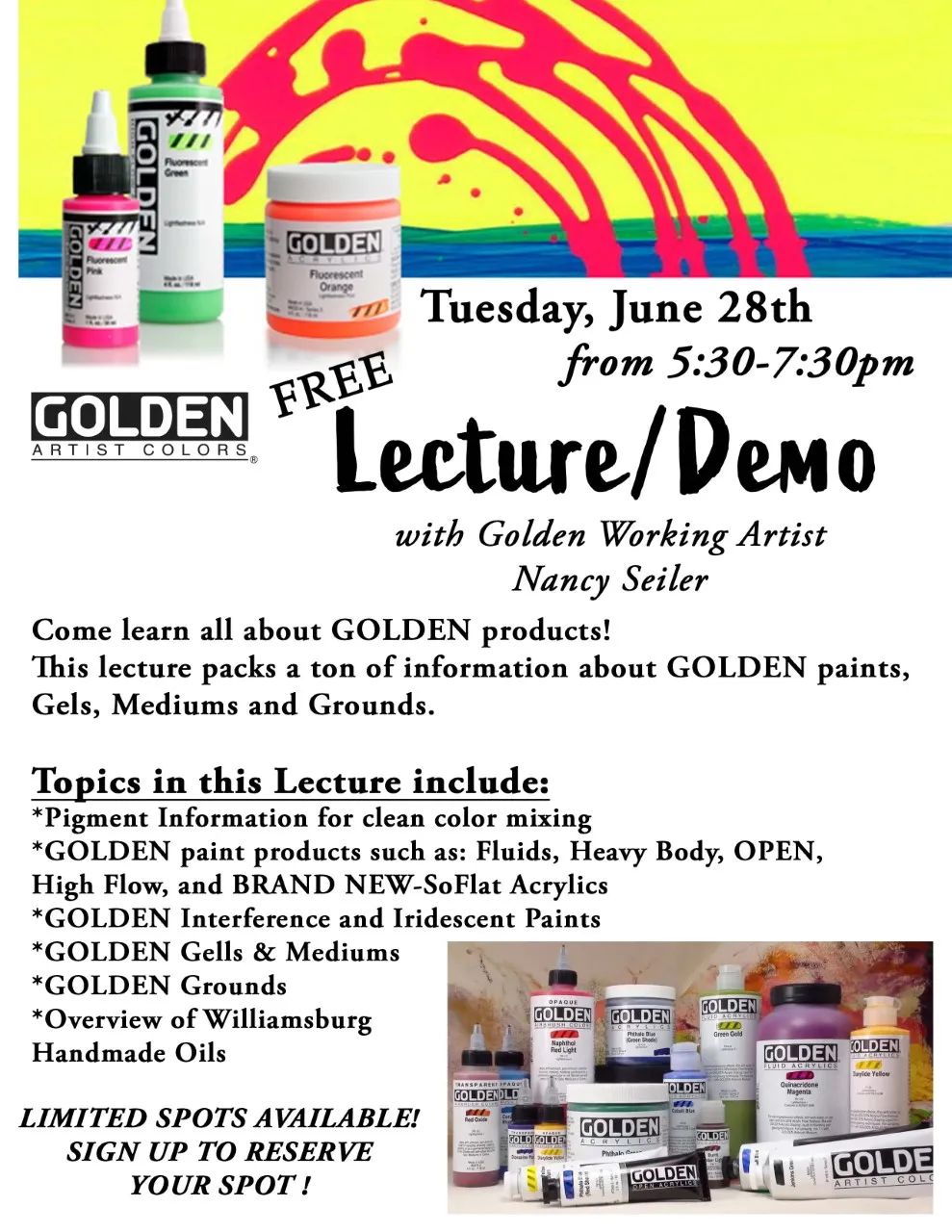 Free GOLDEN A to Z of Acrylics Lecture/Demo with GOLDEN Working Artist, Nancy Seiler