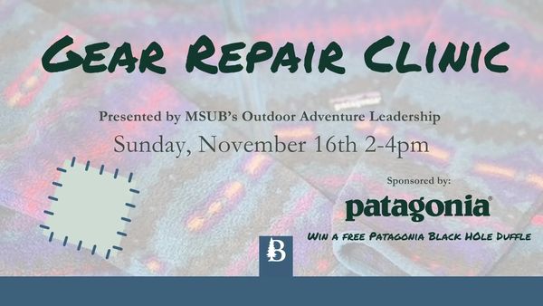 Gear Repair Clinic with MSUB Outdoor Leadership Students * Sunday, November 16 | 2–4 PM | 1730 Grand Ave, Billings