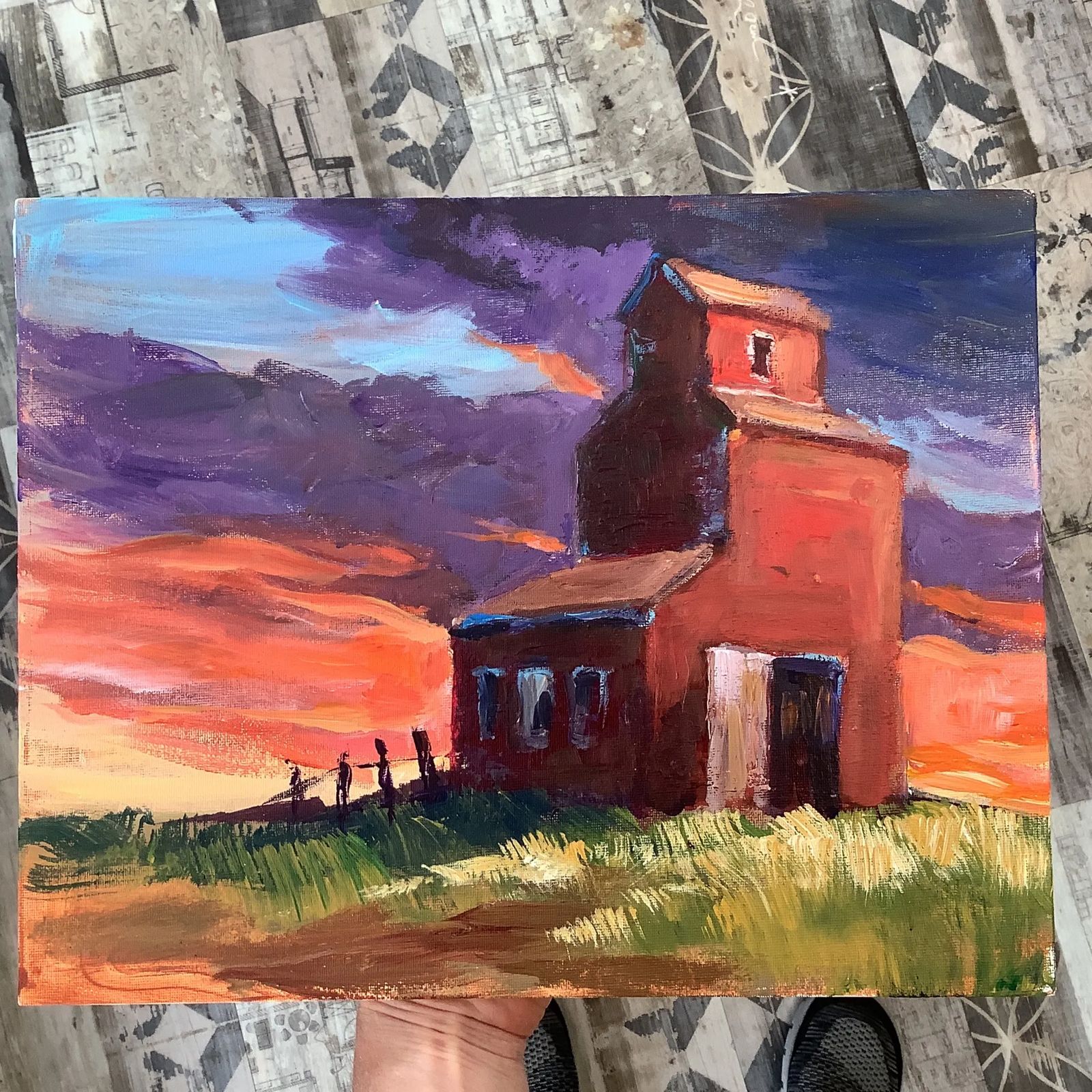 Join Carolyn Thayer and paint this grain elevator. She will walk you through the process one step at a time. You will be painting on a 11x14 inch wrapped canvas and you will be painting with acrylic paint.