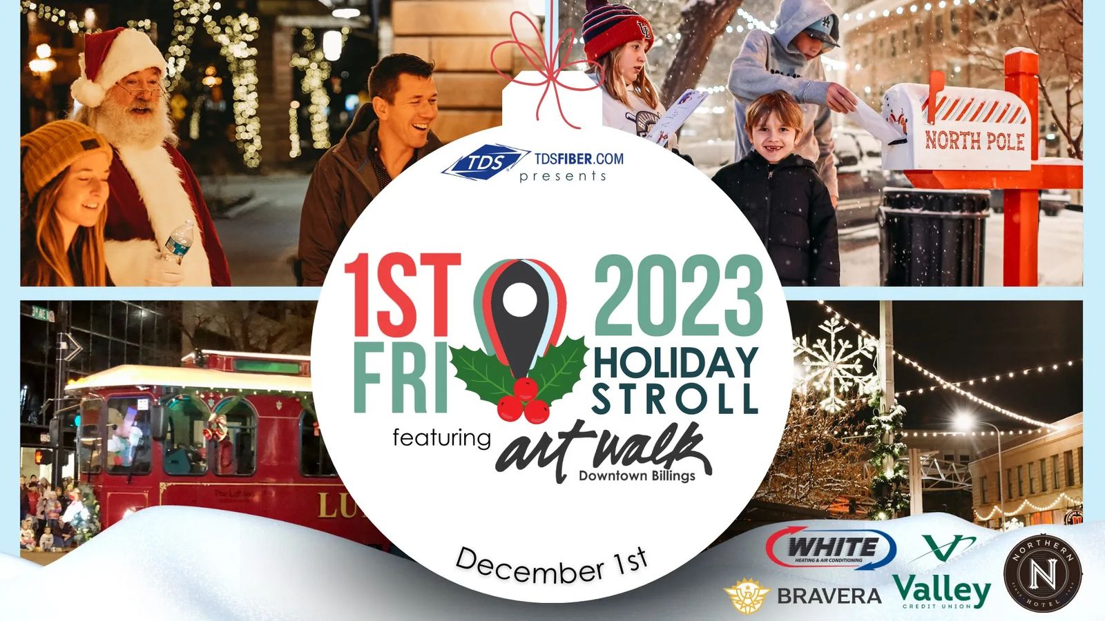 - December’s First Friday consists of the 22nd annual Downtown Billings Holiday Stroll, the stroll includes various downtown businesses, retail shops, and other activated downtown spaces with extended hours, holiday-centric events, specials, holiday beverages and snacks, and loads of holiday cheer!