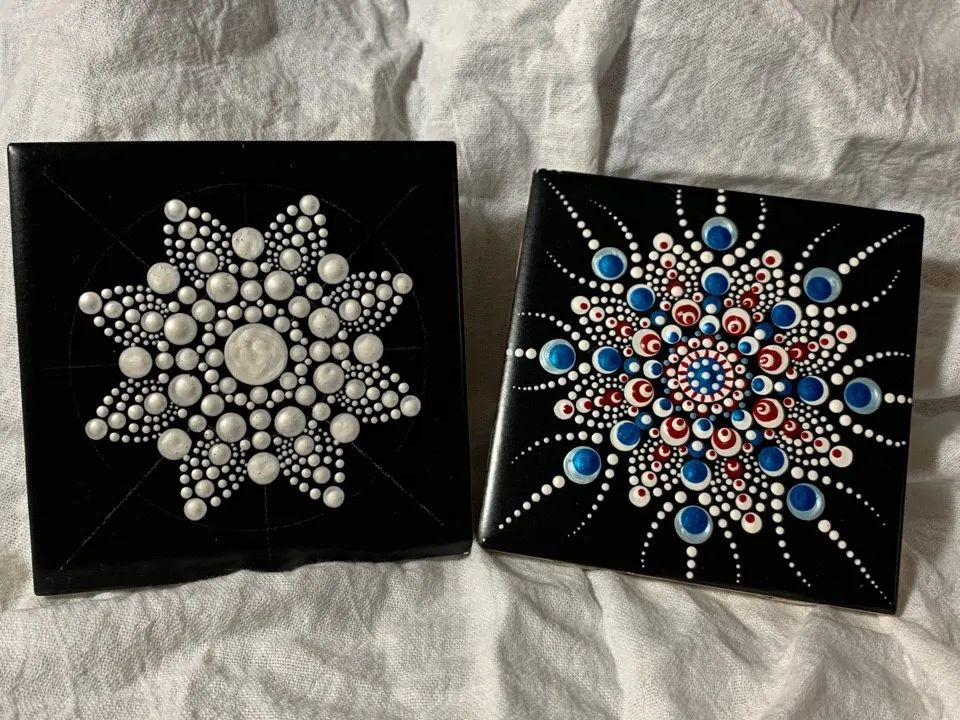 Join us for an introduction to painting Dot Mandalas onto a 4x4 inch flat tile using special tools for the various sizes of dots. In this class, you will be introduced to the basics of dot formation, spatial design and getting a feel for how the process flows.