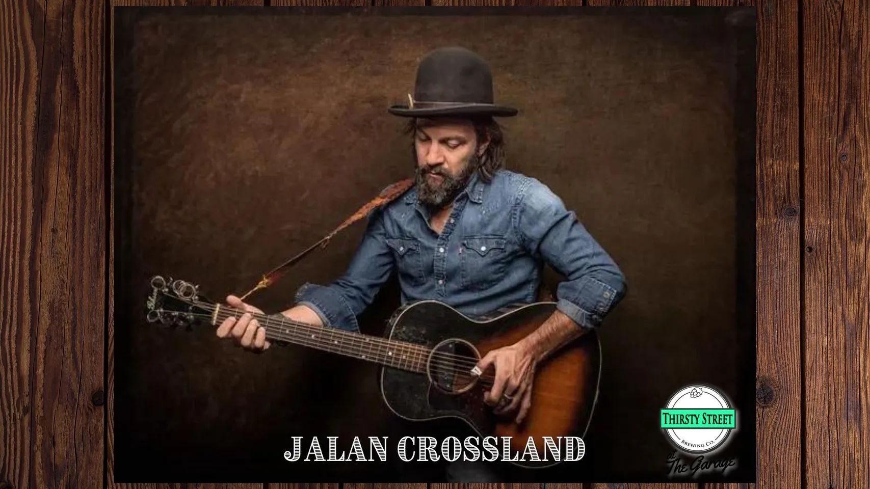 "Jalan Crossland is nationally acclaimed by audiences, critics, and his musical peers as being a premier acoustic guitarist, banjo player, singer-songwriter, and engaging showman.Along with dozens of regional contest awards, his extraordinary guitar work earned him National Fingerstyle Guitar Championship Runner Up honors in ’97 and the State Flatpick Championship title of his home state in 1999. His 2017 album, “Singalongs For The Apocalypse”, won Wyoming Public Radio’s People’s Choice - Album Of The Year award. In recognition for his contribution to the arts in Wyoming, he was bestowed the Governor’s Arts Award in 2013.