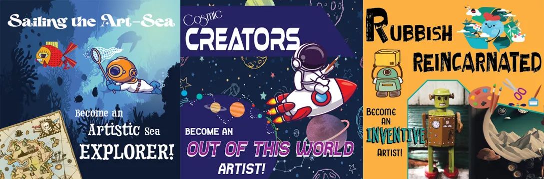 One such adventure coming up soon is our summer art camps for the kids. We are thrilled to have three themed camps planned for our budding young artists to choose from…Sailing the Art-Sea, Cosmic Creators and Rubbish Reincarnated!