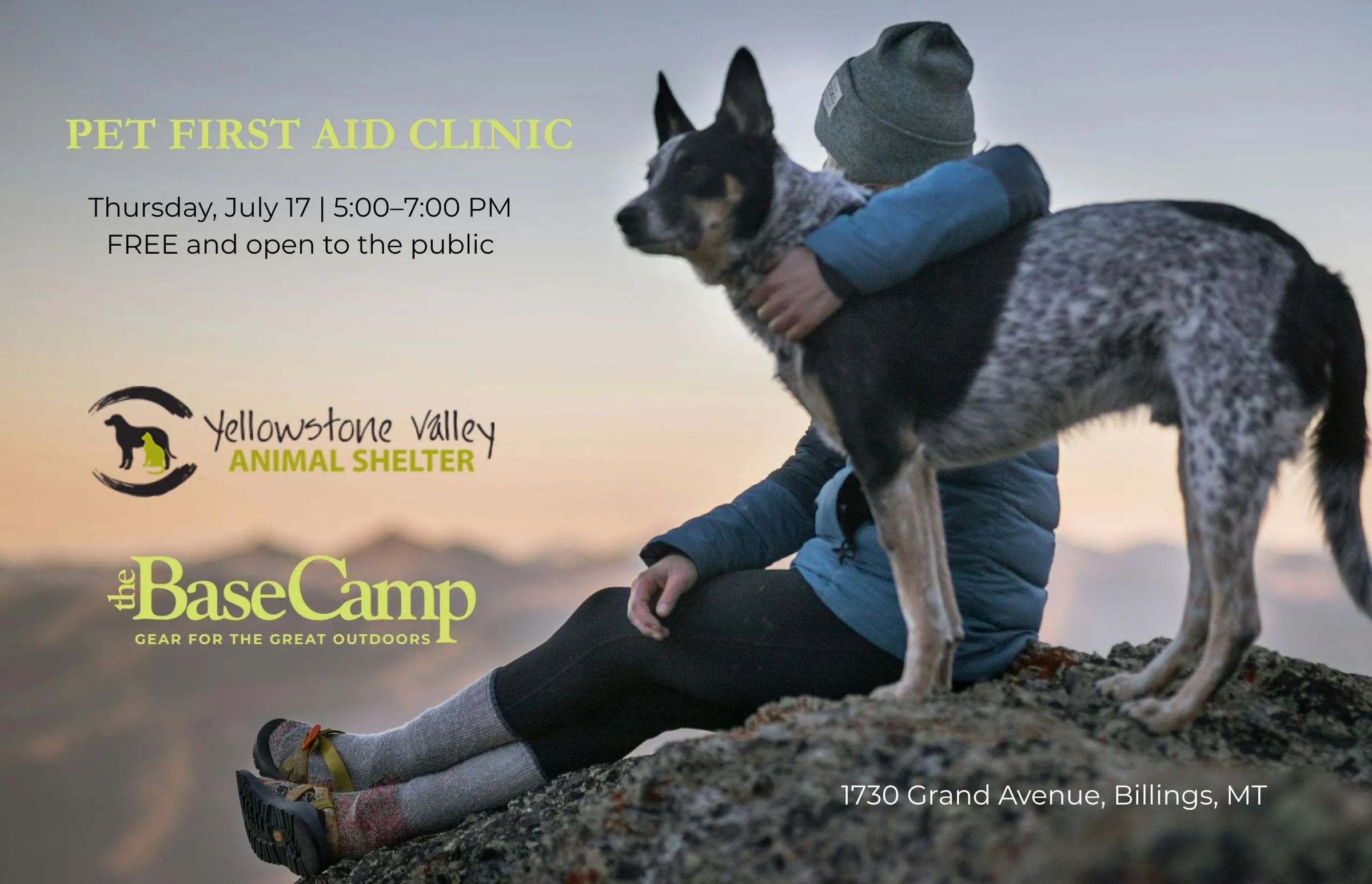 We're teaming up with Yellowstone Valley Animal Shelter for a special evening focused on outdoor pet safety and first aid. Whether you're hitting the trails or just exploring the backyard, you'll walk away with practical tools to keep your pup safe.