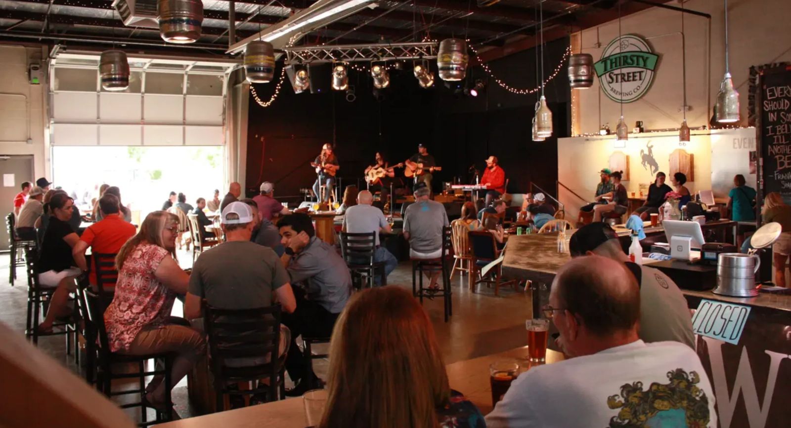 Thirsty Street at the Garage is home to Thirsty Street Brewing Co. main brewing operations, where we brew and package our craft beer. Offerings include a variety of 16 styles from light to dark-colored ales, hoppy ales, gluten reduced ales, and (non-barrel) sours. The Garage is a great live music venue too-hosting local and touring acts on the weekends. Kid and dog friendly.