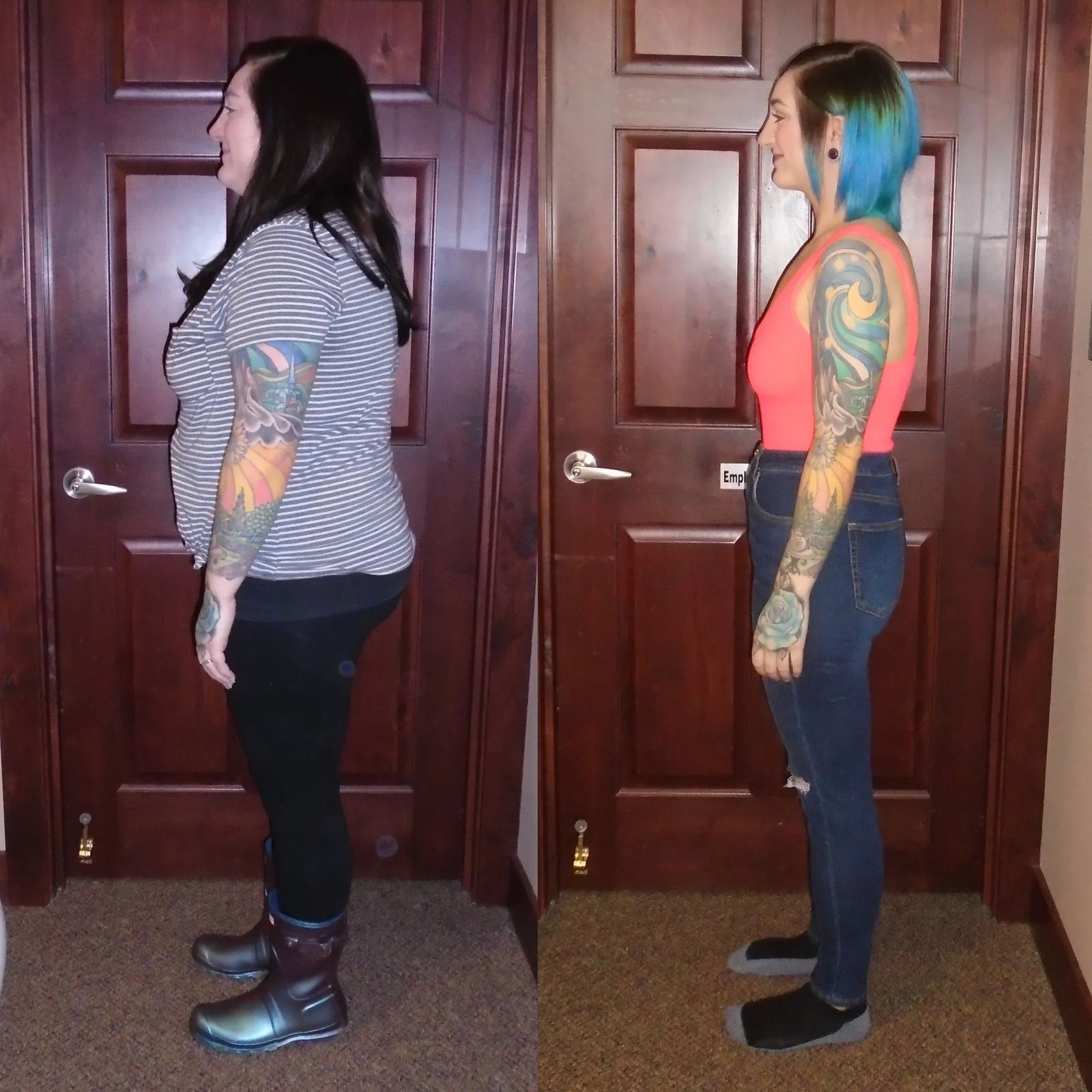 After almost 11 months on Ideal Protein with Billings Last Diet, we finally get to share our official before and after pictures with you! We have lost a combined 180 POUNDS! We have gone from sizes XXL to SMALL and pant sizes 20 to 6!