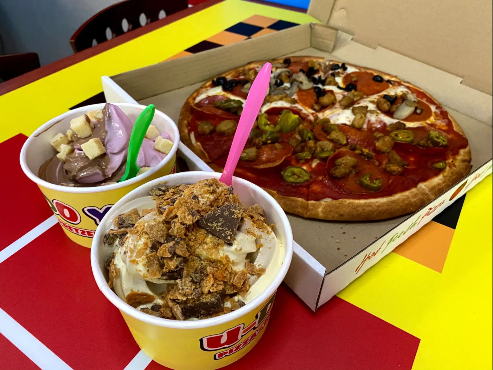 Not only do they have 10 rotating frozen yogurt flavors to choose from (as well as gelato & dairy free options), they have a Build-Your-Own pizza station! U-Do Pizza is available anytime! Choose your crust (gluten free options available), assemble your sauce, cheese and toppings, hand your pizza over to the front counter and they bake it for you in just 90 seconds! Additionally snack options like pretzels, pretzel bites, pretzel dogs, nachos, slushees and fresh squeezed lemonade are also always available!