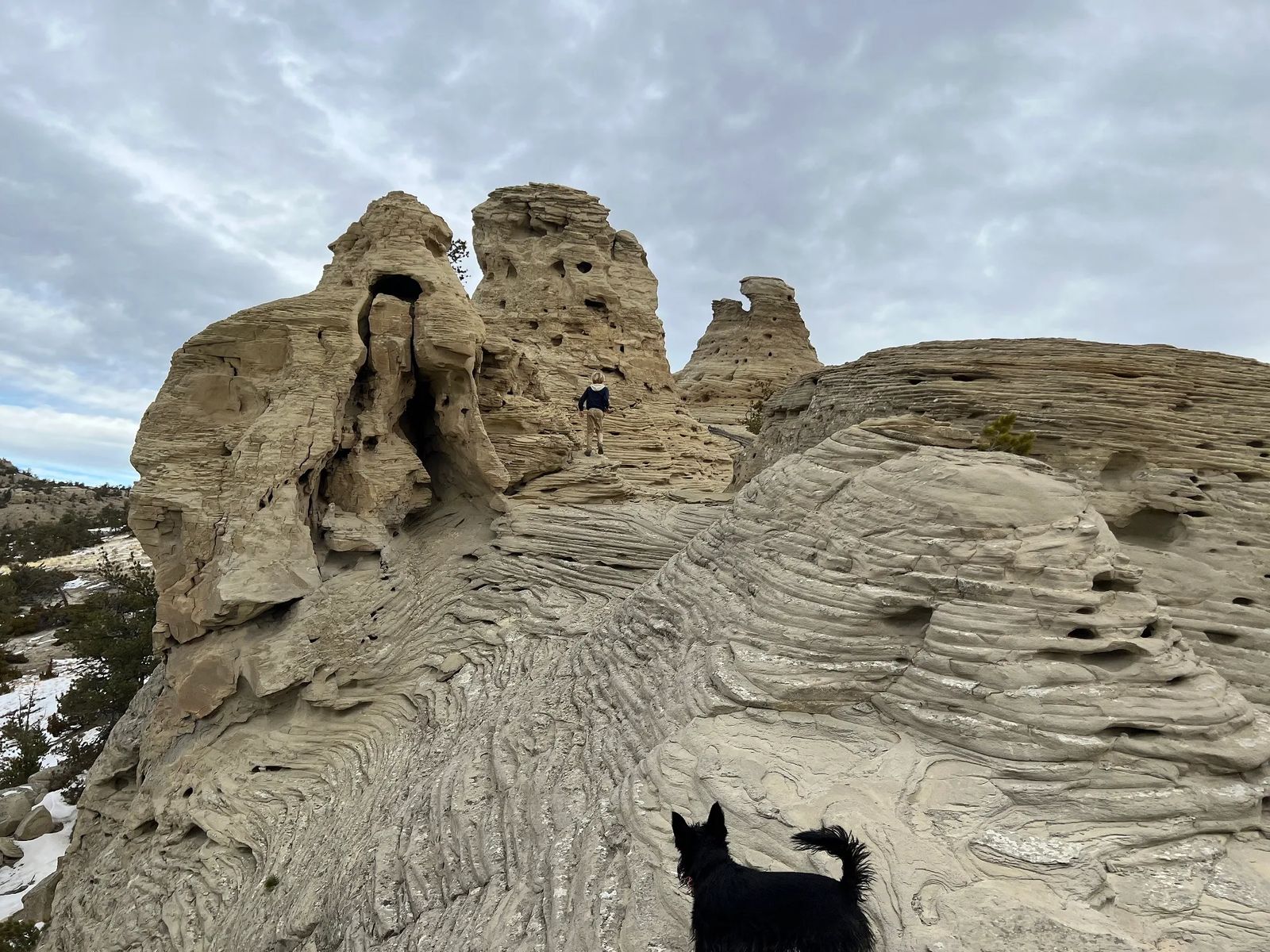 Geologic formations are fun to look at, but the sandstone isn’t high quality. That means when you’re climbing on it, it’s likely to break, chip, and crumble. That’s not to say don’t tread on it, but know that if you take a little spill, there’s not good cell service out there and it could be a long wait until someone comes to rescue you.