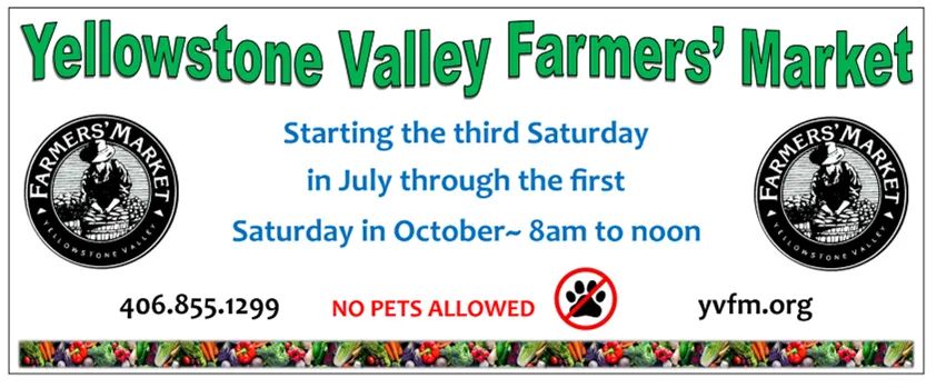 Pet Policy: “We at the Yellowstone Valley Farmers' Market love our furry friends! However, because we are a food based market, we cannot allow pets in the market area, with the exception of service animals, for the safety of our consumers.”